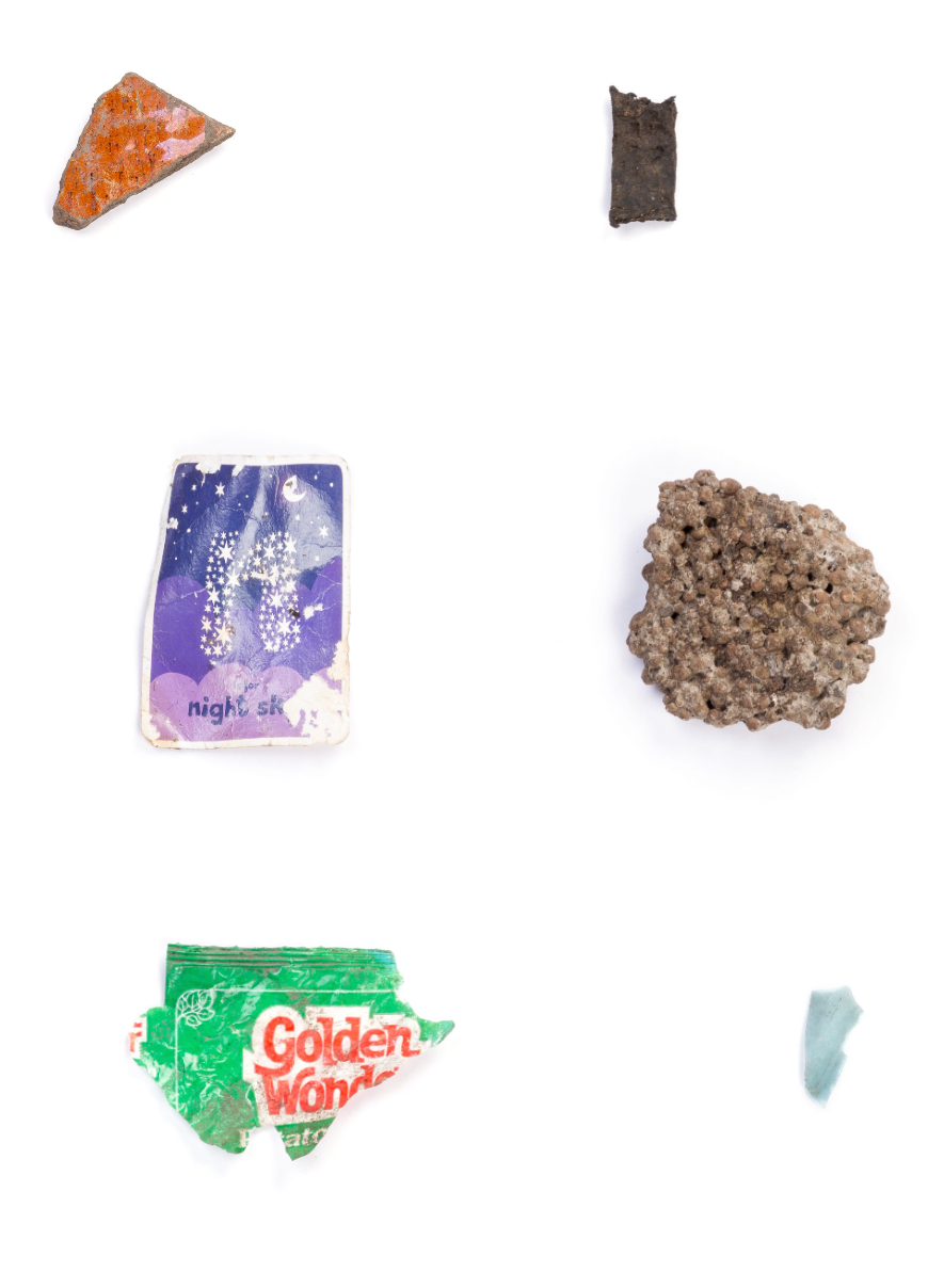 This project is a collection of stuff found within the Bethnal Green Nature Reserve, East London, while Ellie Doney was artist in residence throughout 2017. Doney's interest in the project was material; an examination of the physical properties of disregarded objects that have collected over the years, including rubbish, historical artefacts and animal material.